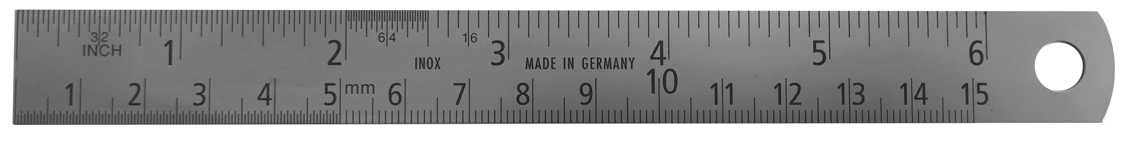 Typ C (inch/mm): Oberkante 1/64; 1/32 und 1/16 inch Teilung, Unterkante 1/2 mm und 1/1 mm Teilung