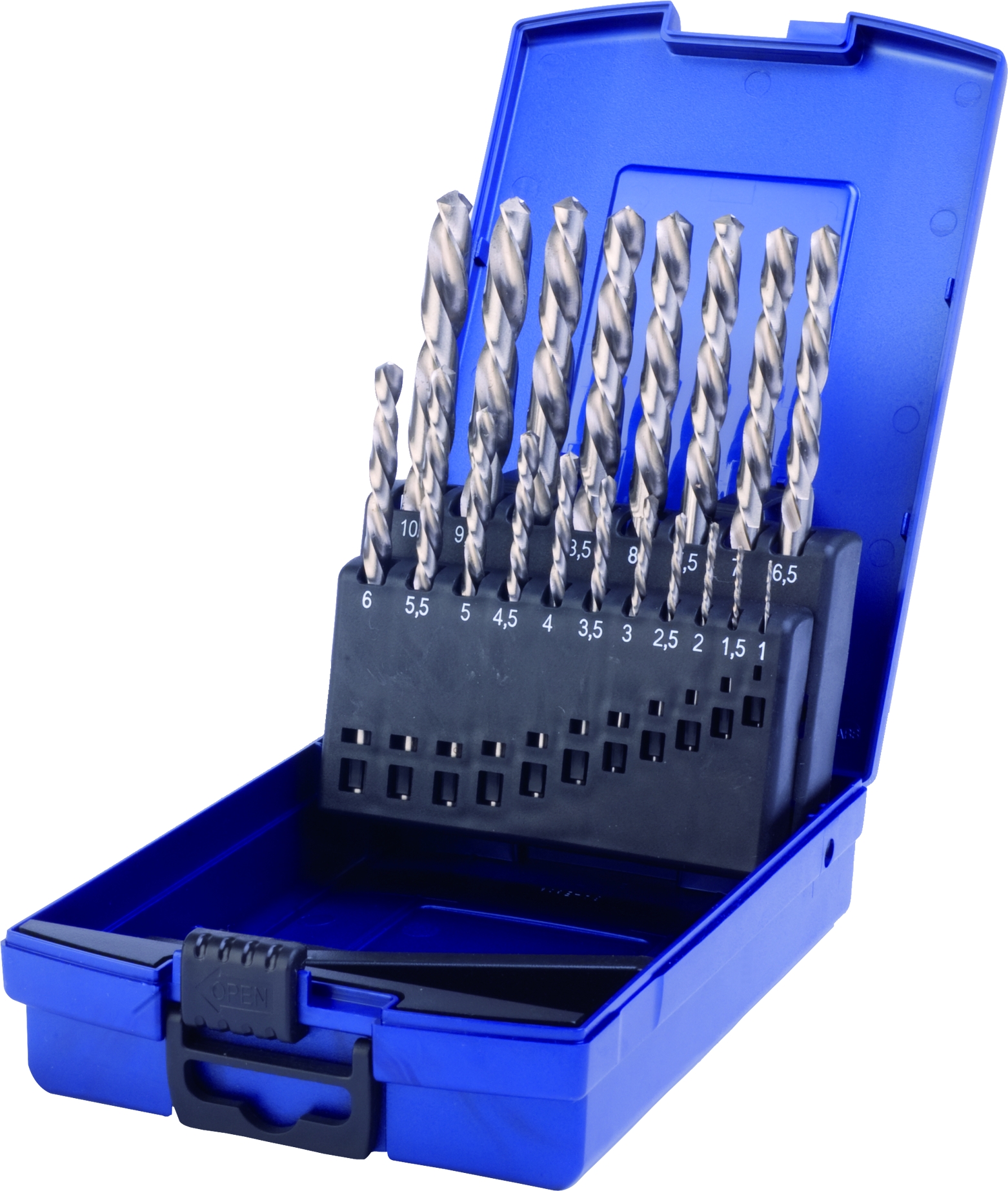 je 1 St. Spiralbohrer, HSSE, CO, DIN 338, profilgeschliffene Qualität, blanke Ausführung, Abmessungen: 1,0 - 10,0 mm x 0,5 mm steigend - 14-tlg. Maschinengewindebohrer-Satz