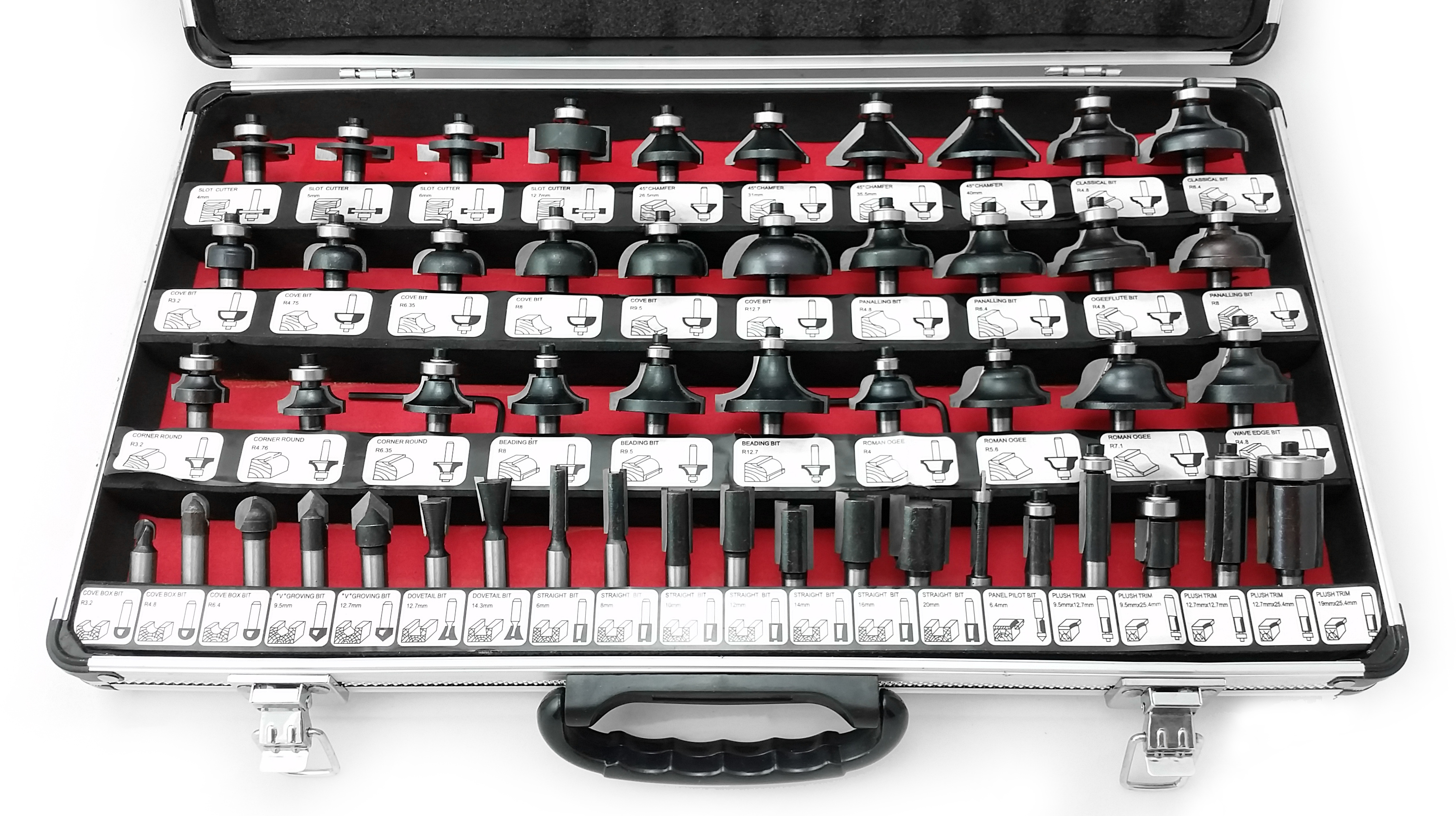 Produktinformationen "50-tlg. Fräsersatz Holzfräser für Oberfräse, Profilfräser, Nutfräser, mit 8 mm Schaft"
